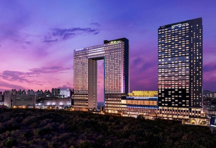 고층 타워 3개 동이 이어져 굽이치는 용을 떠올리게 하는 서울 드래곤 시티! 전체 1,700개 객실을 갖춘 아시아 최대, 또 국내 최초의 호텔 플렉스이다. 노보텔 앰배서더는 그랜드 머큐어와 노보텔 스위트, 이비스 스타일과 함께 그 안에 자리했다.