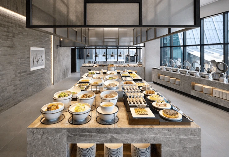 이와 함께, 호텔에는 총 6개의 식음업장이 있다. 조식은 푸드 익스테인지와 인 스타일 두 개의 뷔페 레스토랑에서 이용 가능하다.