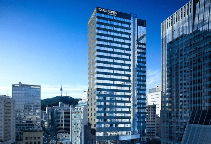 지하철 을지로3가역 12번 출구로 나오면 바로 보이는 포포인츠 명동! 지난해 말 문을 열어, 힙지로 대표 호텔이 됐다. 전면 유리창을 설치한 외관은 화려한 도심과 어우러져 근사하다. 동시에 객실 안에서는 남산까지 조망할 수 있다.