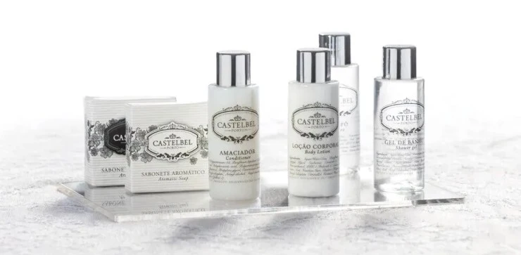 욕실에는 샤워부스가 설치되어 있으며, 어메니티는 포르투갈 카스텔벨 브랜드 제품으로 샴푸, 린스, 바디워시, 바디로션, 비누 등 준비돼 있다. 물론 칫솔, 치약, 수건, 헤어드라이어까지 모두 구비되어 있다.
