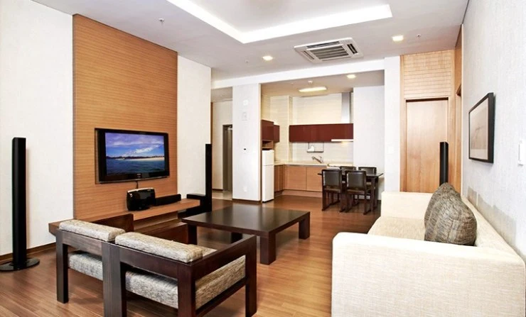 객실 비품으로는 냉장고, 전기밥솥, 전기포트, 인덕션, 식기류 등 주방 용품을 비롯해 침대, TV, 에어컨, 옷장 등 내 집처럼 편하게 머물 수 있도록 구비되어 있다.