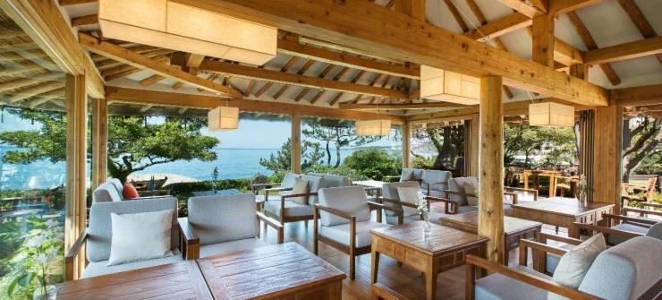 제주 씨에스 호텔 앤 리조트는 국내 최초·유일의 5성급 전통 호텔로 제주의 화강암으로 쌓아 올린 돌담에 지붕은 황모 장인이 정성 들인 황모 지붕 덮어 올려 제주의 전통미가 물씬 풍긴다. 반면 객실은 모던하지만, 창밖 제주 자연과 잘 어우러져 더욱더 매력적이다.