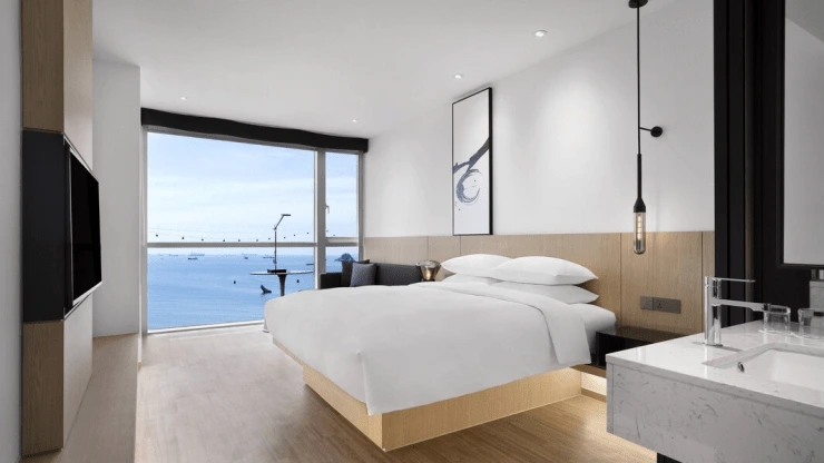기본 객실로 페어필드 바이 메리어트 송도 호텔을 찾는 여행자에게 호불호 없이 인기가 높다. 침대는 킹 또는 트윈베드로 나뉜다. 벽면을 가득 채운 창으로는 푸른 부산 바다가 한가득 들어온다.