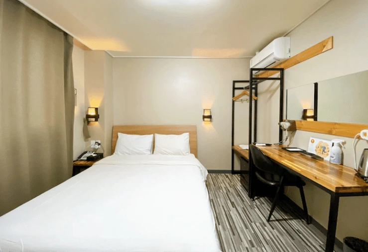 커플과 나 홀로 여행자에게 인기가 높은 객실이다. 전체 9평 크기에 군더더기 없이 깔끔한 구조를 갖췄다. 객실에는 더블베드와 책상, 의자, 에어컨, 냉장고, 간접 조명, 행거를 구비했다.