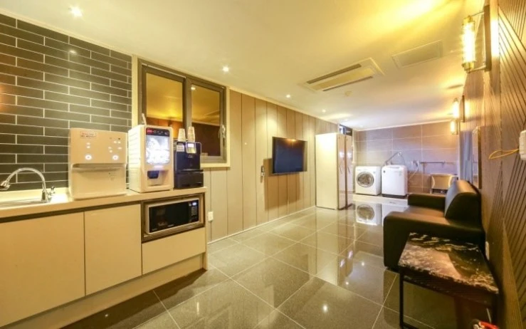 로비는 프런트 데스크와 함께 1층에 자리했다. 로비 한편에는 투숙객 휴게 공간도 있어요. 부대시설로는 무료로 운영되는 세탁실과 회의실을 갖췄다. 세탁실에는 다리미와 세탁기, 세제, 건조대를 비치해 놨다.