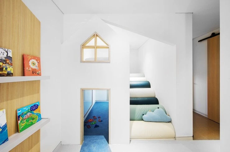 객실은 귀여운 캐릭터 침구와 키즈 텐트, 놀이공간 등으로 구성되어 있다. 웅진북클럽의 다양한 동화책도 비치해 아이들의 호기심을 자극한다. 객실 바닥도 마루라 좀 더 편하게 이용할 수 있다.