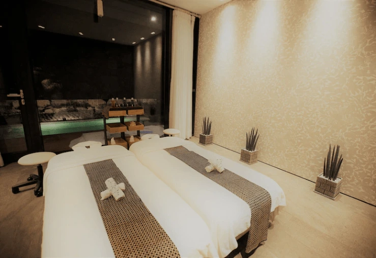 캐노피 장식이 된 침대와 사계절 내내 온수로 이용 가능한 야외 테라스 자쿠지를 갖췄다.