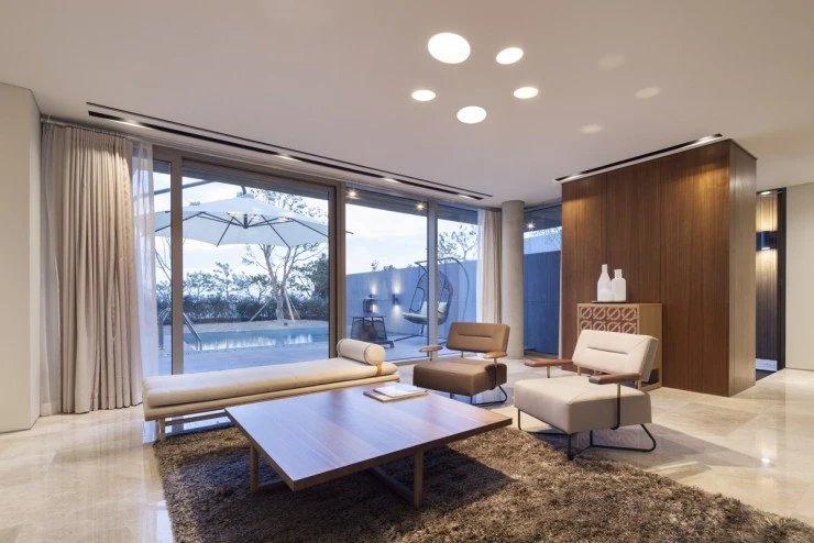 베이힐은 경사진 지리적 특성을 활용해 객실 간 사생활 보호는 철저하게 유지하면서, 다양한 각도와 프레임으로 주변 경치를 즐길 수 있도록 설계됐다. 노출 콘크리트와 목재 마감으로 세련미도 살렸다.