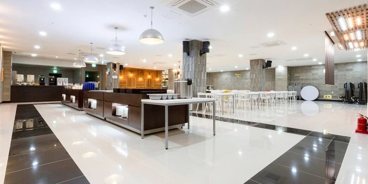 다양한 메뉴가 뷔페식으로 제공된다. 이용 요금은 성인 12,000원 / 소인 9,000원 / 유아 무료이다. 합리적인 가격에 아침 식사가 가능하다.