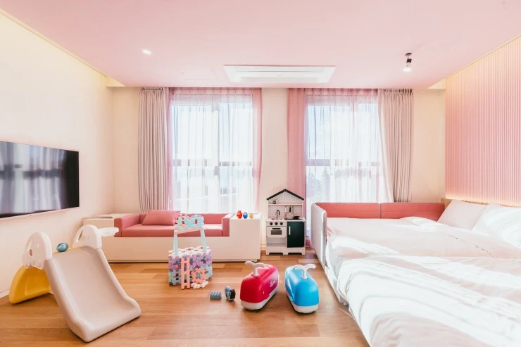 파라다이스시티는 즐길 거리가 다채로운 키즈 호텔이다. 넓은 수영장부터 사파리 센터, 키즈존 등 아이들과 함께 놀 수 있는 공간이 다양하게 준비돼 있다! 수영장은 따뜻한 온수 풀이라 추위 걱정도 없다. 객실은 예술적 감성이 느껴지는 감각적인 인테리어로 아이들과 부모님의 마음을 모두 사로잡는다. 미니바도 무료로 이용할 수 있는 키즈 호텔이다.
