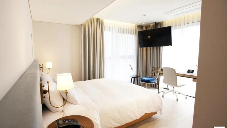코오롱 씨클라우드호텔의 디럭스 더블은 오션뷰는 기본! 더블베드, 간이 주방, 전용 욕실, TV, 소파, 탁자 등을 갖춰 갓성비 부산 숙박 시설로 알려졌다. 디럭스 룸은 침대 타입에 따라 디럭스 더블 또는 디럭스 트윈으로 구분되니 커플여행에는 더블룸을, 우정여행에는 트윈룸을 선택하면 된다.