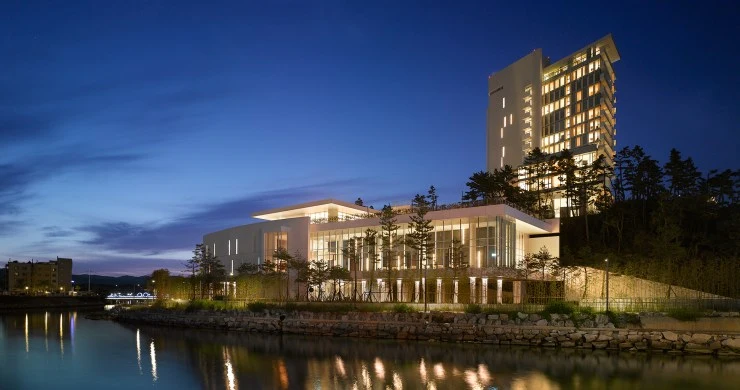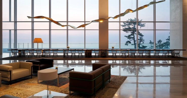 강릉 씨마크호텔은 전에 없던 국내 최초의 럭스티지 호텔이다. 세계적인 건축가 리처드 마이어가 설계에 참여해 공간의 품격을 더 높였다. 경포해변과 강문해변 사이에 위치해 전망도 뛰어나다. 커플, 신혼여행 숙소로 강력 추천한다.