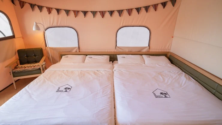 다음은 강원도로 떠나볼게요! 주문진 해변에서 차로 5분도 안 걸리는 가까운 거리에 있는 주문진 글램핑 오토 캠핑장이다. 바다와 가까운 만큼, 서핑 등 물놀이와 함께 즐기기에도 좋겠죠! 객실은 2인에서 최대 6인까지 머물 수 있는 널찍한 사이즈를 자랑한다.
