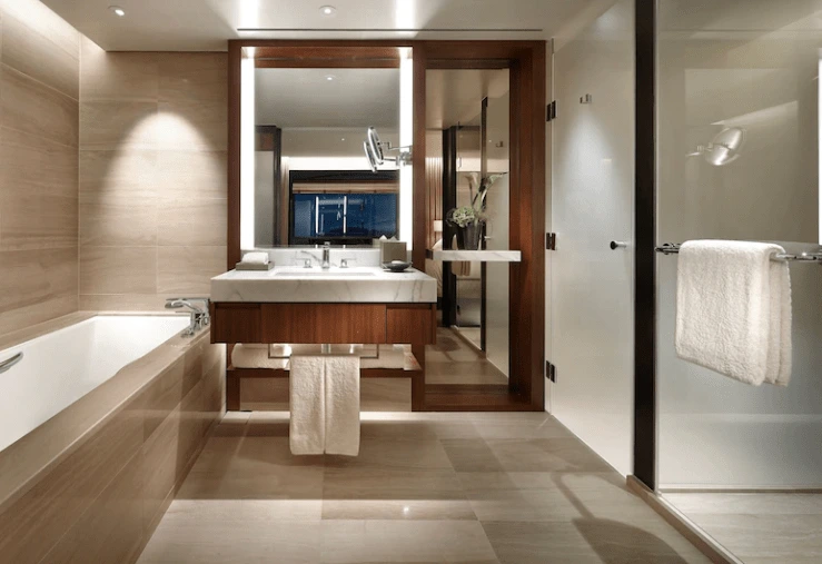 욕실에는 몰튼 브라운 어메니티가 제공된다. 일회용품으로는 칫솔과 치약, 쉐이빙 세트, 머리빗, 면봉, 화장솜, 목욕 가운, 핸드 타월, 페이스 타월, 베스 타월, 슬리퍼, 헤어 드라이어가 비치돼 있다.