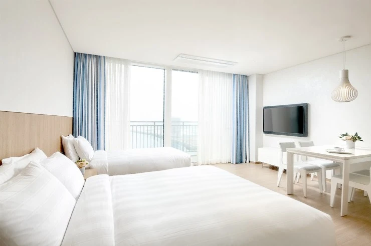 스탠다드, 디럭스, 스위트 3가지 객실 타입을 제공한다. 에디터의 추천은 디럭스 오션룸! 이 객실에서만 일출을 감상할 수 있다. 로맨틱한 일출의 순간을 연인과 맞이해보자. 현재 하프 오션뷰 방향으로 공사가 진행 중이다. 스탠다드, 주니어 스위트, 이그제큐티브 패밀리 객실 예약 시 참고하자.