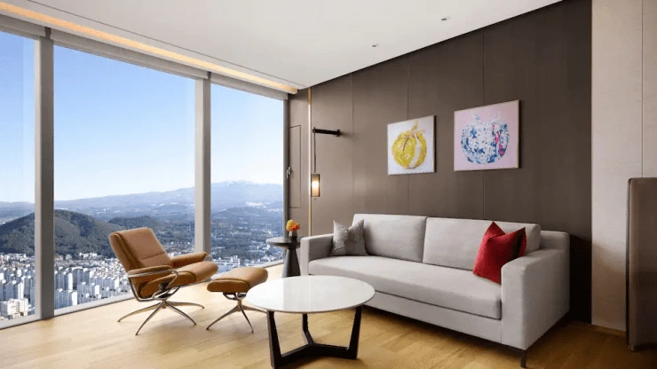 객실에는 75인치 삼성 스마트 TV와 개별 냉·난방 시스템, 블루투스 알람 스피커, 네스프레소 커피 머신을 갖췄다. 침대는 가로, 세로 2M 크기의 슈퍼 킹 베드로 남다른 편안함이 느껴진다. 침구도 맞춤형으로 준비해 놨다.