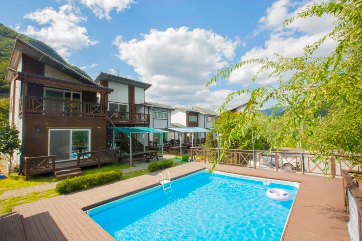 소백산 아래 위치해 매우 맑은 공기를 자랑하며, 바로 앞에 남천계곡도 있다. 하절기에는 야외 수영장도 운영한다. 편의점과 매점도 차로 5분 거리에 위치해 편리하다. 체크인은 14시부터 가능하며 체크아웃은 11시까지이다.