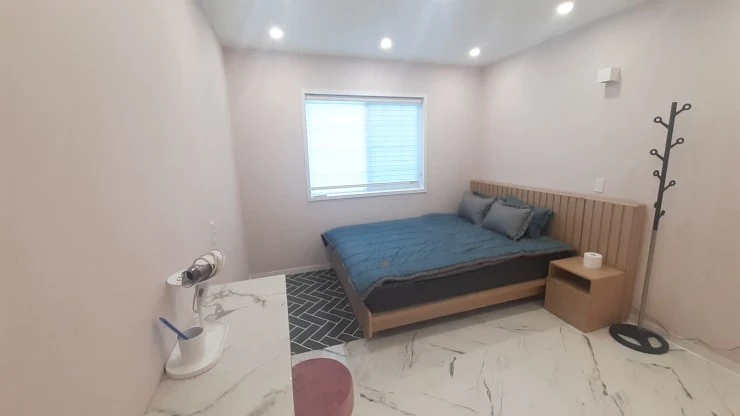 센스 있는 인테리어는 사진 찍을 맛이 나게 한다! 객실 내 취사도 가능하며 취사도구와 식기가 갖춰져 있다. 스마트 TV가 있어 유튜브와 넷플릭스도 볼 수 있다. 단 넷플릭스는 유료 계정이 필요하다.