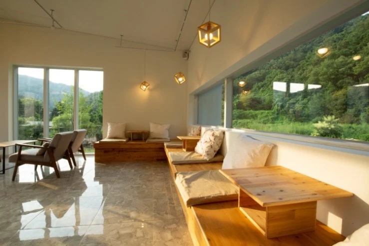 숨하우스펜션은 깊은 휴식을 원하는 분들께 추천하고 싶은 단양 숙소이다. 천혜의 자연환경과 프라이빗함까지 모두 갖춰 휴식에 최적화되어 있다. 단양 카페 리틀포레스트, 카페산까지는 30분 정도 소요된다.