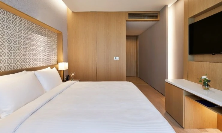 화려한 외관 만큼이나 인테리어도 고급스럽다. 특히 호텔 안팎에는 로컬 아티스트의 작품을 전시해놔, 제주의 정서가 고스란히 느껴진다. 객실은 심플한 베이지톤 가구와 간접 조명을 사용해 편안한 분위기이다.