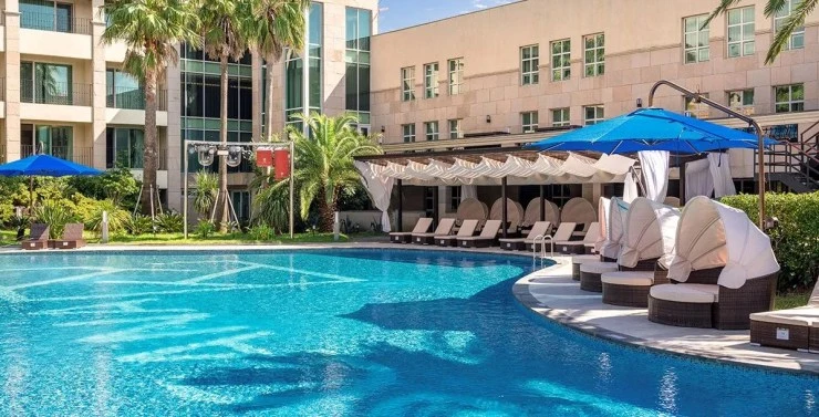 부대시설로는 제주도의 야자수로 이국적인 분위기를 자아내는 스텔라 야외 온수풀이 준비되어 있다. 투숙객은 입장료도 무료! 횟수도 무제한이니 머무는 동안 마음껏 이용해 보자. 단 카바나, 썬베드, 구명조끼 등은 유료로 이용 가능하다.