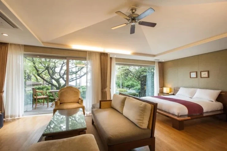 로얄 스위트 객실은 별장형태로 야외 노천탕을 갖춘 아주 매력적인 객실이다. 고전미와 세련미가 조화롭게 이루어진 객실에서 제주의 자연을 누리며 여유로운 허니문의 추억을 만들 수 있을 것이다. 객실에는 킹 사이즈 베드와 TV, 홈시어터, 개인금고, 전화기, 냉장고 등이 준비되어 있다.