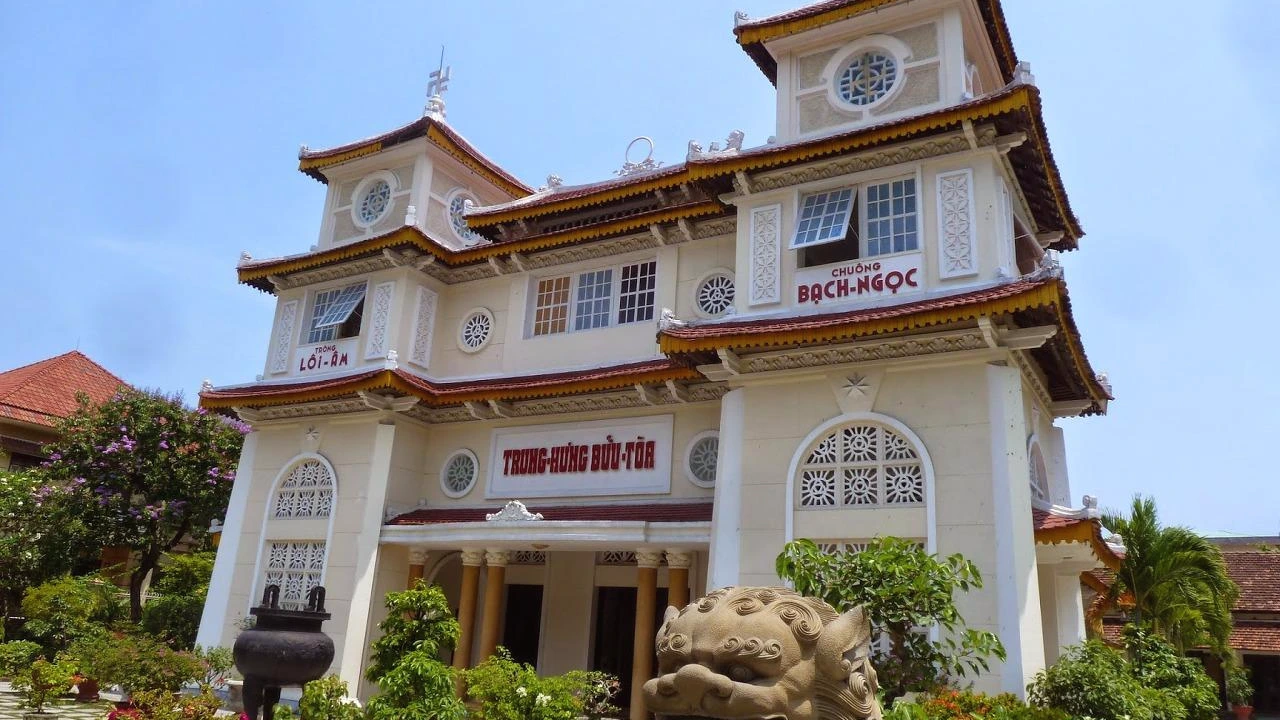 차분한 분위기의 작은 사원. 하얀 문 앞에 놓인 중국식 사자상이 웅장한 자태를 뽐낸다. 사원 인테리어도 아름답고 예술적인 분위기가 넘친다. 중앙 제단 뒤에 있는 독특하고 큰 눈 인형도 인상적. 베트남 전통 5교를 바탕으로 해 혼합 종교를 만나볼 수 있는 까오다이교 사원. 이 곳에 방문해서 신흥 종교도 접해보고 내, 외부를 구경해보는 것은 어떨까.