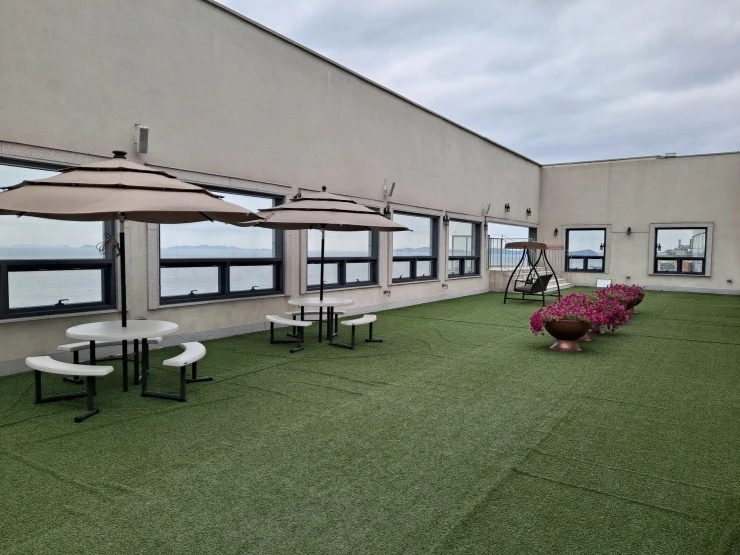 호텔 옥상에는 멋진 루프탑 정원과 포토존도 마련되어 있다. 아름다운 인생샷을 남기기 딱이다. 카페와 편의점, 세미나실 등의 부대시설도 함께 운영한다. 체크인은 15시부터 가능하며 체크아웃은 11시까지이다.