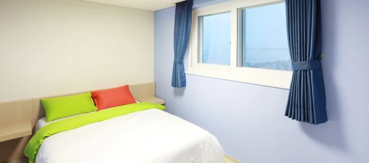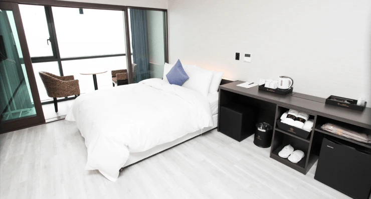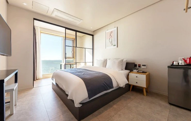 최상의 숙면을 위해 프리미엄 매트리스와 침구를 제공한다. 침대 구조이지만 온돌식 바닥 난방으로 꽃샘추위도 걱정 없다. 베란다도 있어 바다를 조망하기에도 좋다.
