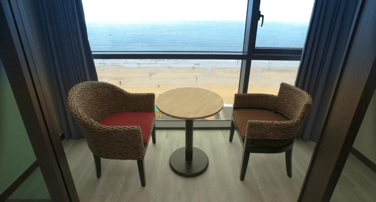 우연플로라 호텔은 신축 호텔로 모던한 인테리어가 돋보인다. 넓은 통창이 있어 오션뷰를 감상하기도 제격이다. 실내 테라스도 있어 선셋 보기 딱이다.