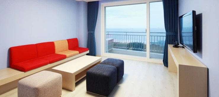 리모델링으로 쾌적하고 깔끔한 시설을 제공한다. 디럭스 오션뷰 객실은 거실과 방 2개로 구성되어 있으며 최대 5인까지 숙박이 가능하다. 방과 객실에서 오션뷰를 감상할 수 있다.