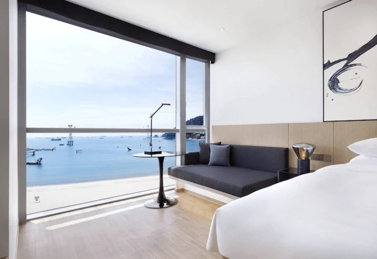 지난해 문을 연 신상 호텔로, 벌써 많은 여행 인플루언서의 사랑을 독차지하고 있다. 전 객실 오션뷰인 만큼 외관을 가득 채운 통유리도 굉장히 세련되게 느껴진다. 실내는 브라운톤으로 아늑하고 편안한 분위기이다.