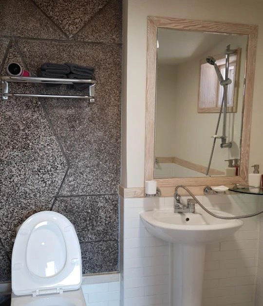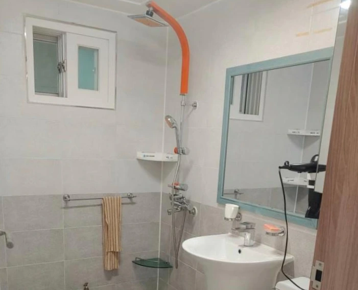 욕실은 깔끔하게 리모델링 되어 샴푸와 바디워시, 수건, 헤어드라이어 등이 준비되어 있다. 칫솔, 치약, 클렌징폼 등은 개별적으로 챙겨와야 한다.