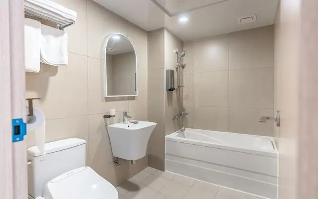 어메니티는 샴푸와 린스, 바디워시, 칫솔 세트 등이 구비되어 있다. 객실 내에는 욕조도 있어 반신욕을 즐길 수 있다.