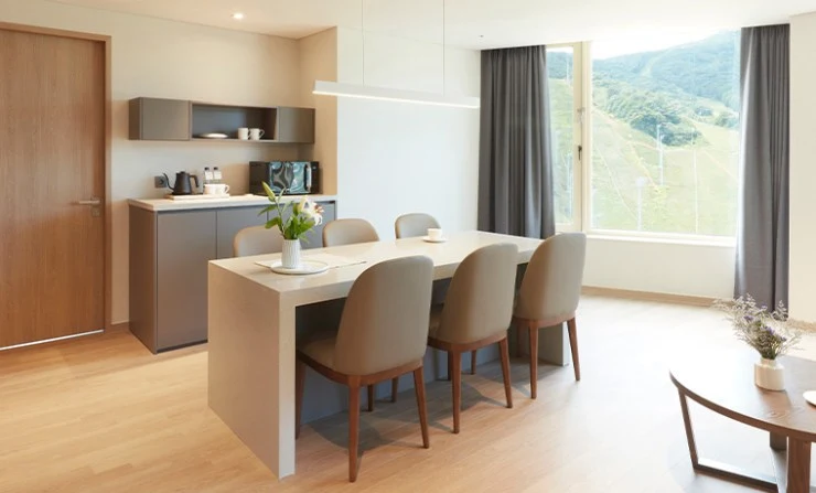 아이와 함께 휘닉스 평창 찾은 여행자에게 인기가 높은 객실이다. 침실과 욕실 각 2개와 거실, 스페셜 플레이스로 구성됐다. 대형 TV와 에어드레서, 전자레인지, 전기포트 등을 갖췄다. 고층부에 위치해, 전망도 좋다.