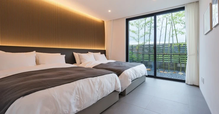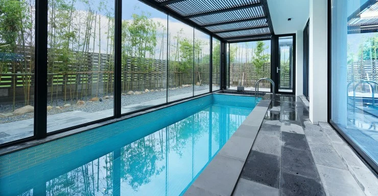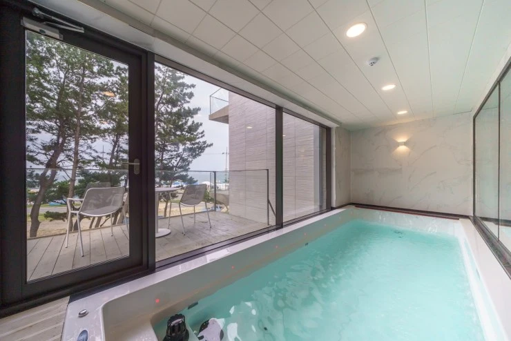 전 객실이 실내 온수 풀빌라로 운영되고 있다. 개별 테라스에 넓은 실내 수영장과 스파 시설을 함께 구비하고 있다. 수영장은 별도의 미온수 비용 없이 이용할 수 있다. 온도도 하루 종일 35도로 유지된다. 넓은 통창 너머로는 대나무를 심어, 프라이버시를 존중하면서 개방감도 놓치지 않았다.
