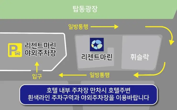 제주 리젠트마린호텔 투숙객들은 누구나 주차장을 무료로 이용할 수 있다. 호텔 내부 주차장 외에도 야외 주차장이 마련되어 있어 만차 걱정 없이 이용할 수 있다.