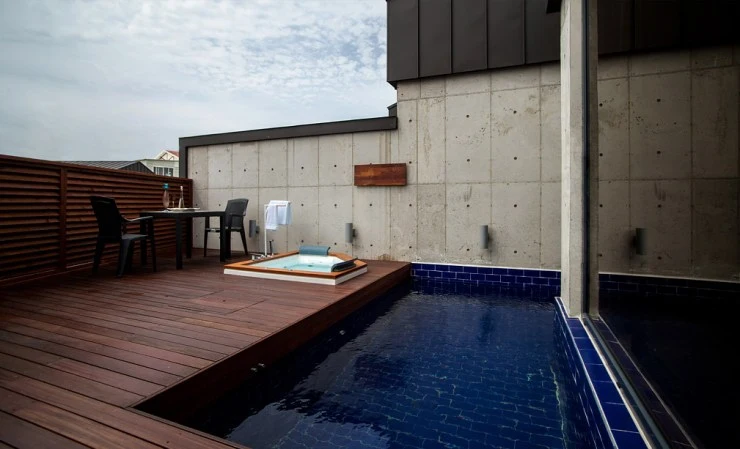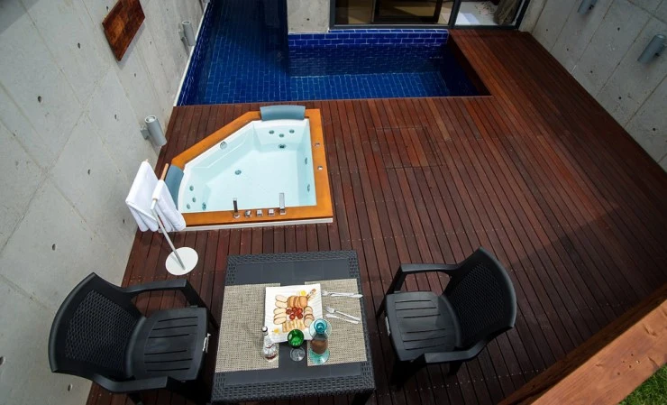 스탠다드 객실에는 수영장과 스파를 갖춘 개별 테라스가 있다. 그뿐만이 아니라 공용으로 이용할 수 있는 야외 수영장도 있다! 하지만 아쉽게도 수영장은 6월부터 9월까지만 운영된다. 스파는 계절과 상관없이 언제든지 이용할 수 있다. 깔끔한 인테리어의 카페도 운영 중이니 한 번쯤 방문해보자.