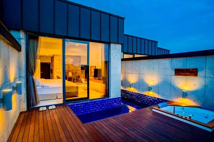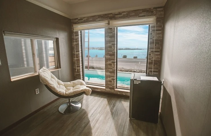 전 객실 수영장과 바비큐 공간이 마련된 개별테라스가 구비되어 있다. 바로 앞 바다가 있어 오션뷰 감상하며 물놀이 즐기기에 이만한 곳이 없다. 심지어 미온수로 제공돼 쌀쌀한 날씨에도 걱정없이 즐길 수 있다. 비큐는25,000원 추가하면 그릴, 숯, 쌈장, 가위, 집게, 와인잔, 오프너, 목장갑 등이 준비된다.