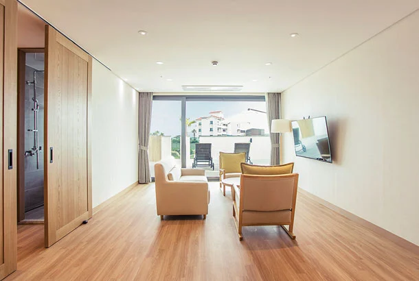 침실과 거실, 주방, 욕실, 개별 수영장과 제트 스파, 바비큐 시설까지 갖추고 있어 굳이 숙소 밖을 나갈 필요 없이 객실 안에서도 즐길 거리가 풍부해 인기가 높다.