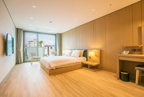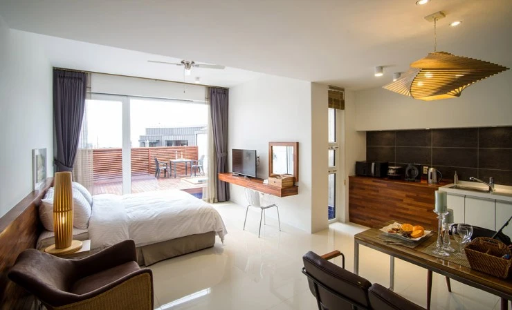 스탠다드 룸은 퀸 사이즈의 침대와 깔끔한 주방, 욕실을 갖추고 있어 커플여행 또는 신혼여행지로 추천한다.