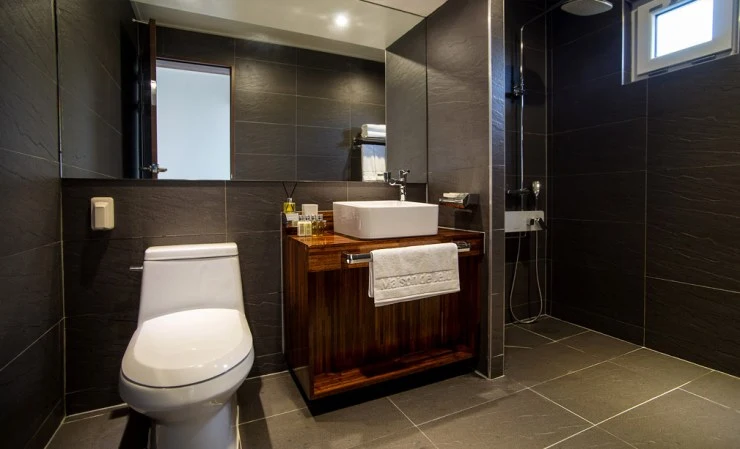 욕실은 샤워부스 형태이며 샴푸, 린스, 바디워시, 비누, 수건, 헤어드라이어 등 기본적인 어메니티와 스파입욕제까지 제공된다.