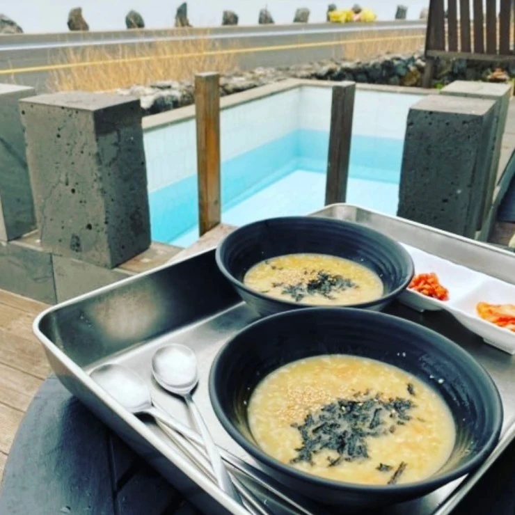 아쿠아뷰티크는 아침 08:00~08:10 / 09:00 ~ 09:10 사이에 룸서비스 형태로 조식이 제공된다. 무료지만 신선한 제주도식자재로 만든 전복죽과 밑반찬이 함께 제공돼 아침부터 든든하게 먹을 수 있다.