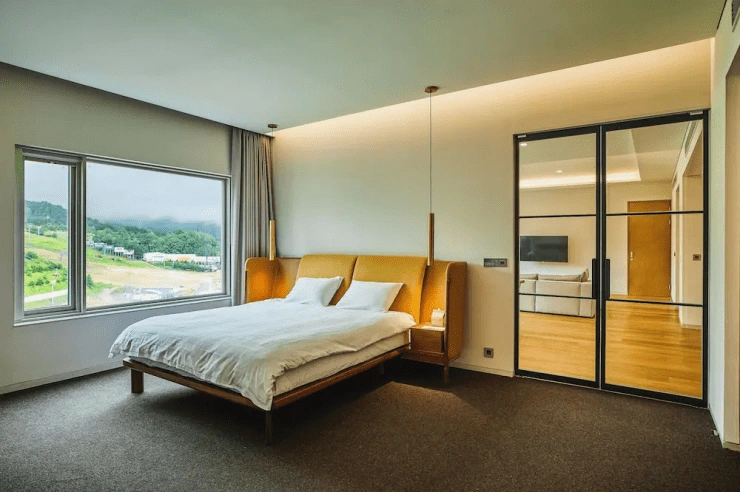 리조트 객실은 크게 아홉 가지 타입으로 나뉜다. 전망은 동해의 일출을 누워서 감상할 수 있는 오션뷰와 거대한 설악산의 울산바위가 늠름하게 자리한 마운틴뷰로 구분된다. 취향 따라 고르면 된다.