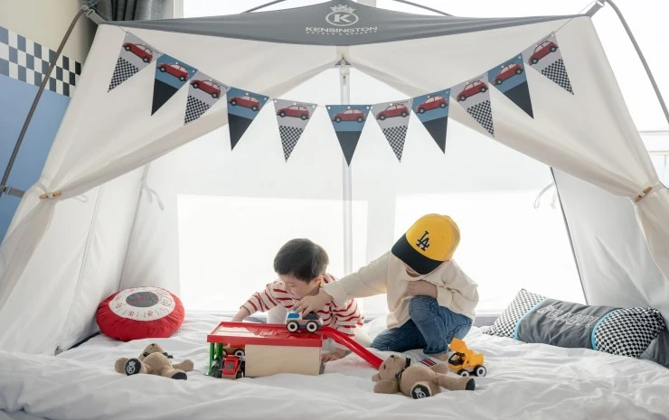 아이와 함께라면, 디럭스 키즈 마이카와 스튜디오 키즈 코코몽 객실을 추천한다. 자동차 모양 침대와 볼풀장, 장난감, 키즈 어메니티 등을 갖췄다. 젖병 소독기와 유모차, 가습기도 빌릴 수 있다.