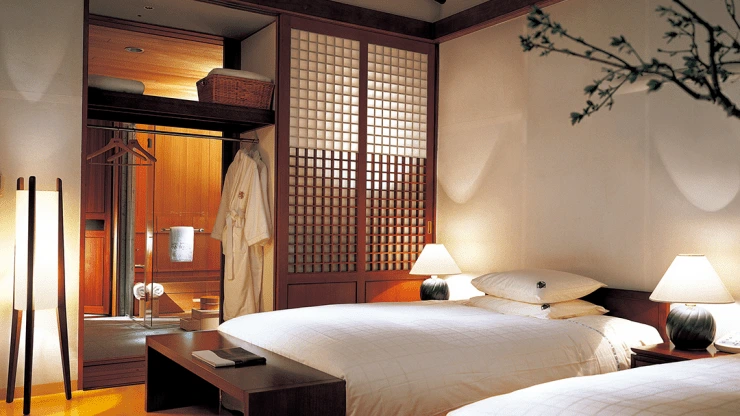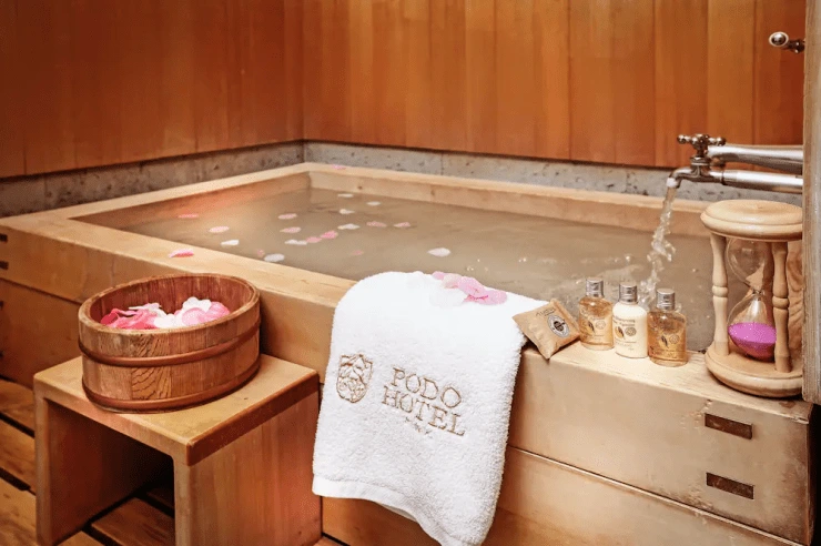 양실 욕실에는 대리석, 한실에는 히노키 욕조가 설치돼 있다. 반신욕 하기 좋다. 어메니티로는 불가리의 샴푸와 컨디셔너, 바디워시, 바디로션, 비누가 제공된다. 칫솔과 치약 등 개인 위생용품도 완비했다.