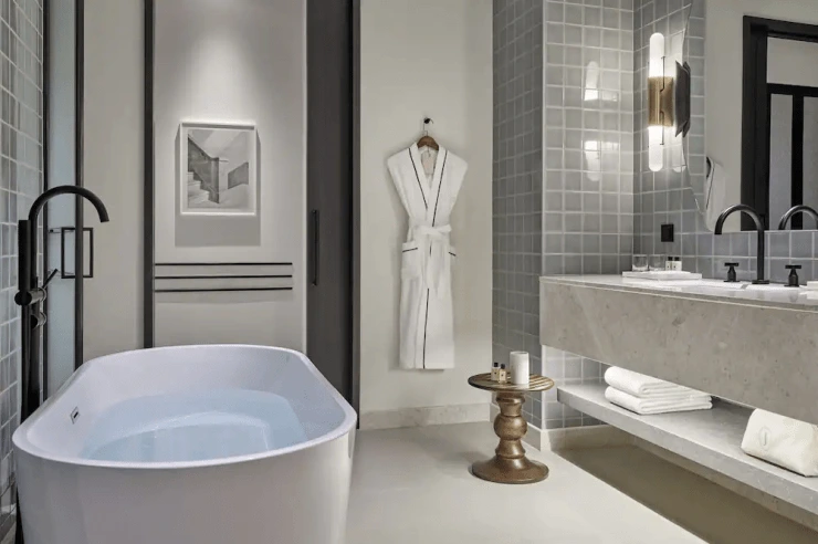 욕실에는 샤워 부스와 욕조, 비데가 설치돼 있다. 어메니티로는 조말론의 샴푸와 컨디셔너, 바디워시, 바디로션, 비누가 제공된다. 목욕 가운과 3종 수건, 헤어드라이어도 완비했어요. 칫솔과 치약만 챙겨 오자.