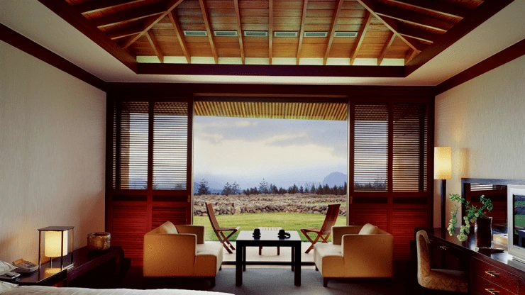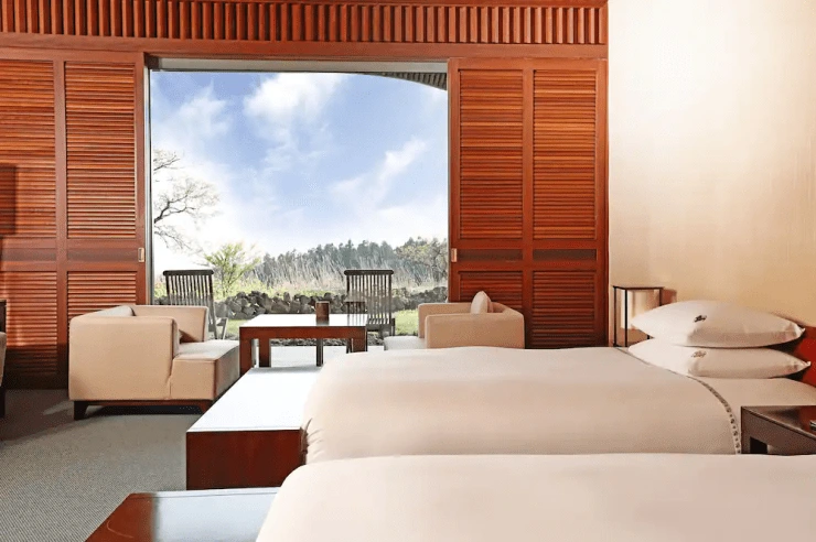 제주도숙소추천하면 빼놓지 않을 만큼, 건축미가 뛰어난 곳이다. 제주의 오름과 초가집을 모티브로 설계됐다. 세계적인 건축가 이타미 준의 철학이 고스란히 느껴진다. 투숙객 대상 건축 예술 가이드 투어도 운영 중이다.
