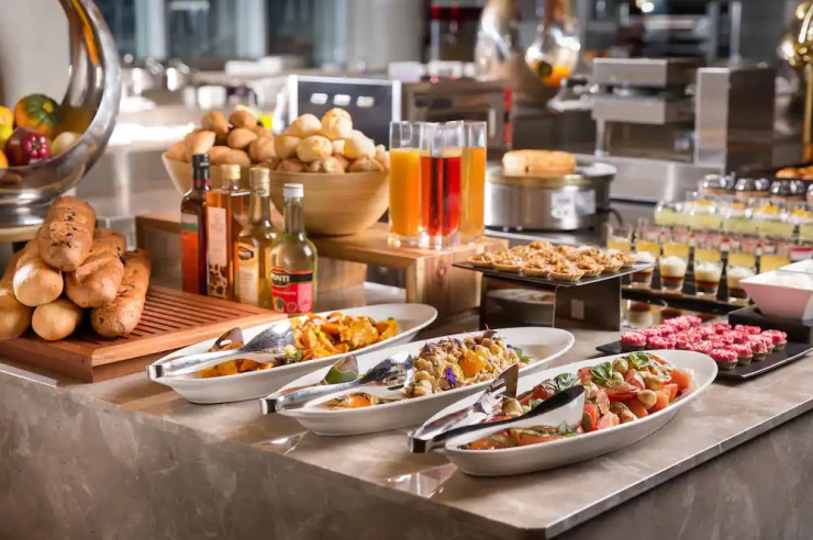 기본적으로 조식은 레스토랑 아리아에서 오전 7시부터 10시 30분까지 인터내셔널 뷔페로 운영된다. 힐 스위트 투숙객은 프라이빗 라운지 그랑 제이에서 서양식 또는 한식 한상 차림으로 즐길 수도 있다.