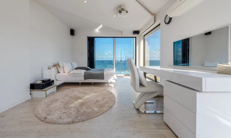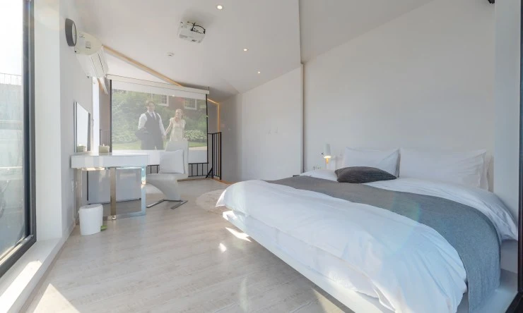 2층은 침실과 야외 테라스로 구성되어 있다. 침실에는 빔프로젝터도 있어 영화 감상도 가능하다.